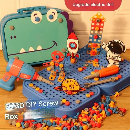 Children's Electric Drill Screw Assembly Building Blocks, Dismantling Toy Toolbox Nut Combination DIY Puzzle Connection Model