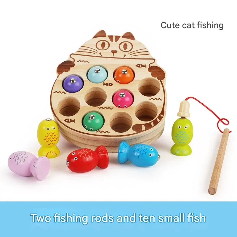 Wooden Magnetic Fishing Game for Kids – Pretend Play Early Education Toy with Fishing Rod