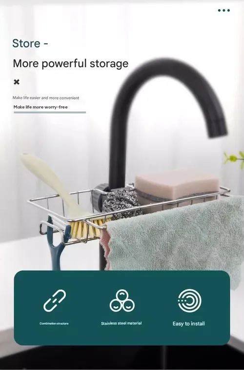 (Deepened)Faucet Shelf, Stainless Steel Sink Drainer Rack, Household Kitchen Bathroom Sponge & Towel Holder