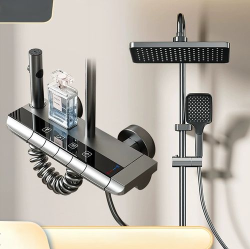 Complete Gunmetal Grey High-Pressure Shower Set - Aerospace Aluminum Bathroom Shower System with All Fixtures