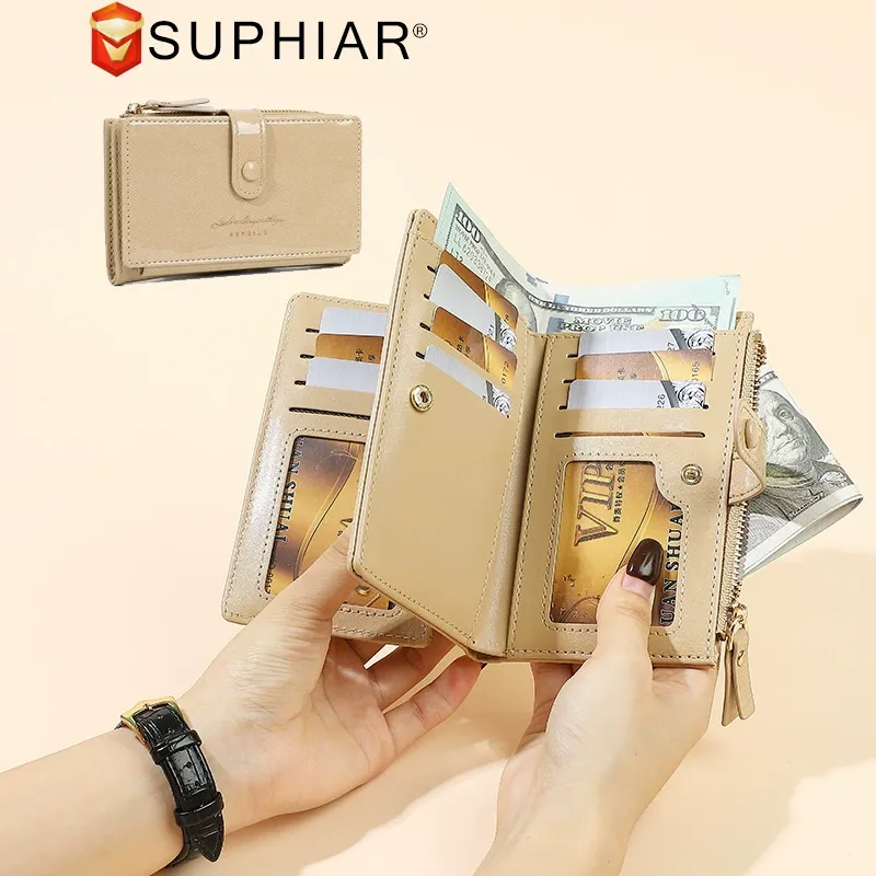 Dual-Fold Multi-Slot Coin Purse & Card Holder, All-in-One PU Leather Cover - Sleek Mid-Length Design for Women