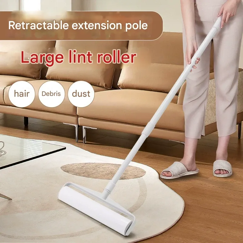 Heavy-Duty Lint Roller with Long Handle | Large Sticky Roller for Pet Hair, Dust on Bed, Floor, Furniture