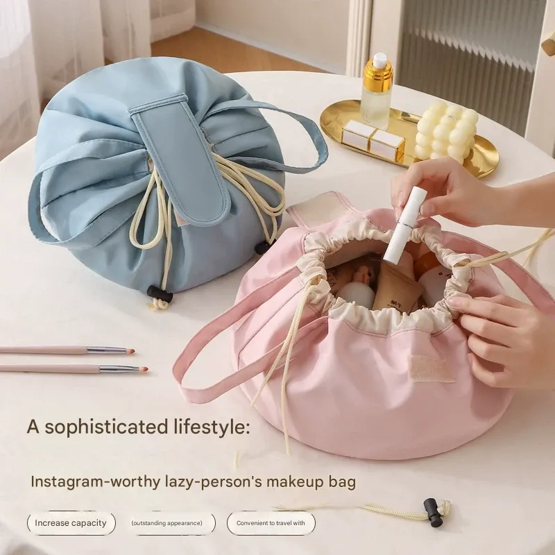 Instagram-style upgraded portable lazy makeup bag - bucket drawstring pouch, portable large capacity cosmetics drawstring storage bag